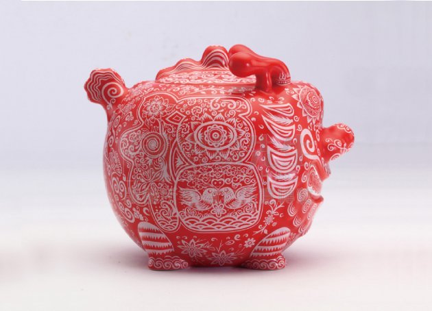 藝術家【洪易】九龍茶罐第叁號作品「紅囍龍」,以作品特色代表「紅色剪紙系列」為主元素,採用全瓷中色彩燒製最高難度「新中國紅」為基底,呈現新中國紅的光潤柔和,並推出簡約平裝版 ,更是洪易迷必入手的經典小物。