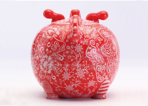 【瓷器擺件】洪易|九龍茶罐 紅囍龍