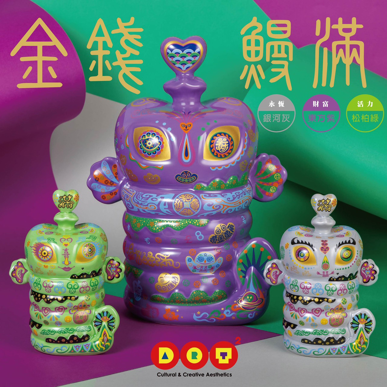 洪易蛇年最新生肖創作『金錢鰻滿』取諧 音為『金錢滿滿』之意;將蛇轉化為海洋生物『鰻魚』,飽滿線條、奇趣可愛的外型打破人 們對蛇的距離印象。